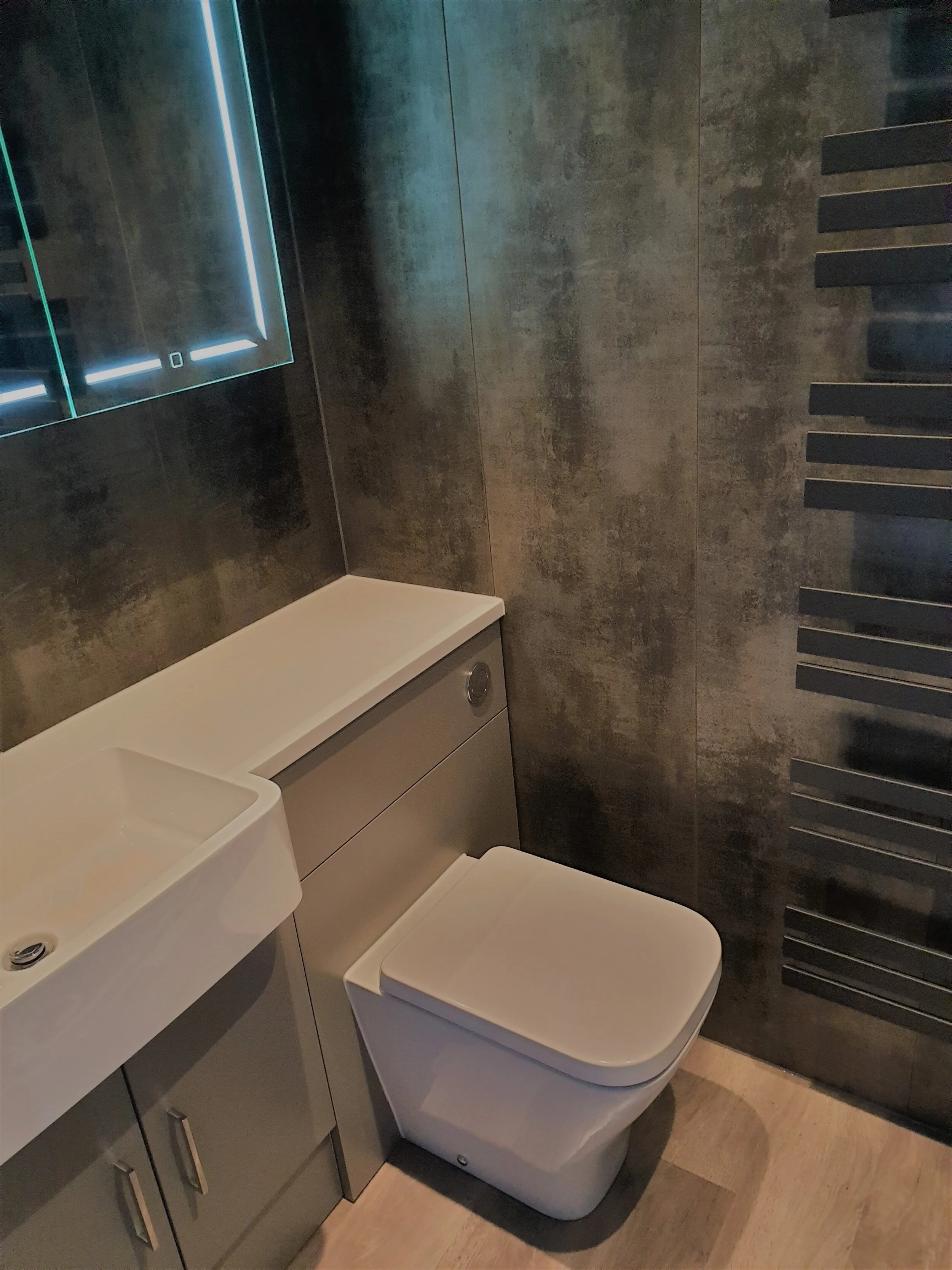 Last year we worked on a bathroom revamp in Bishop’s Cleeve with a modern edgy feel. The panels on the wall really go well with the lit bathroom mirror.