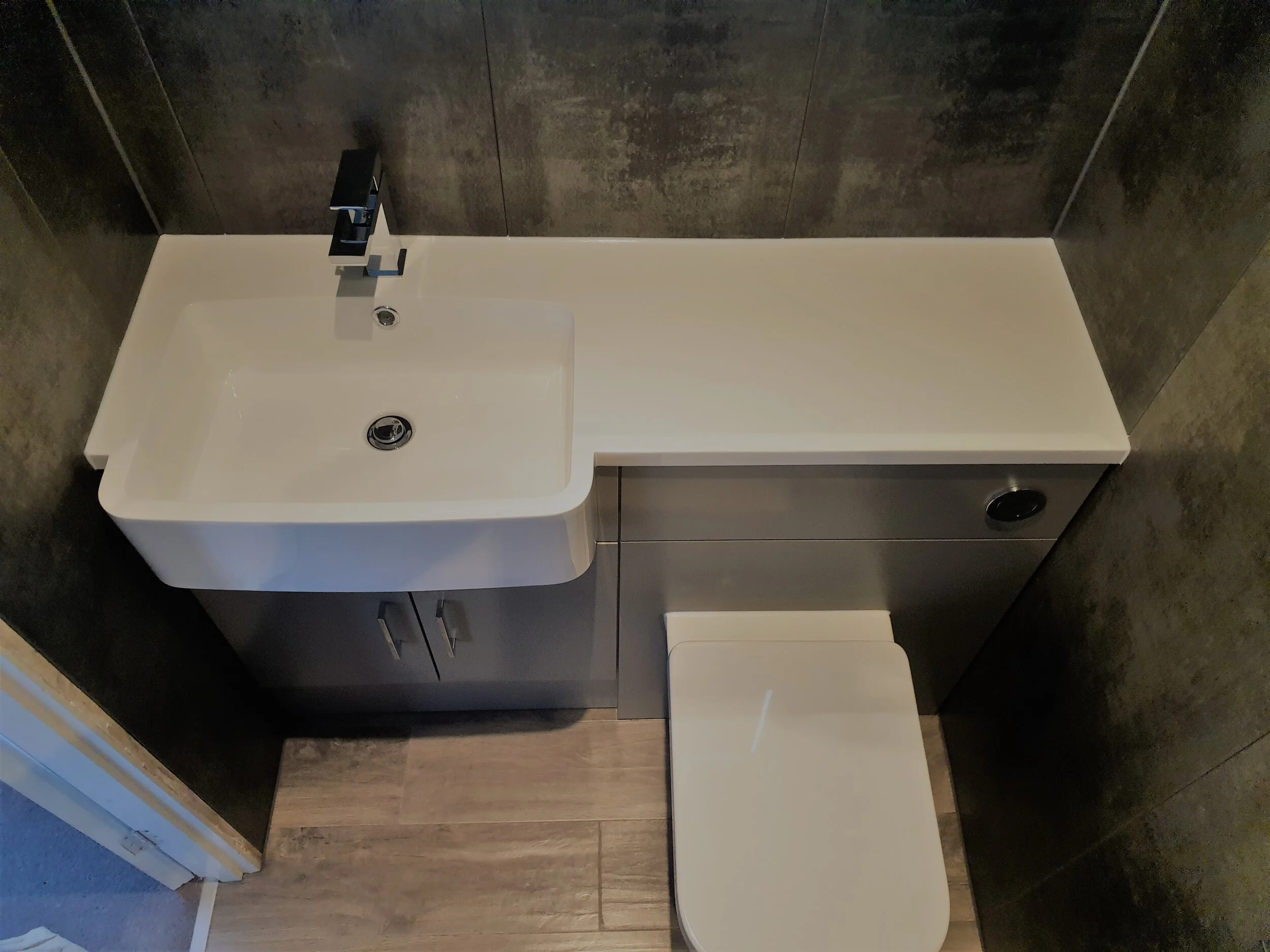 We really like the way that the basin/worktop seem to have been made for the space and give a really tidy clean finish to the room!